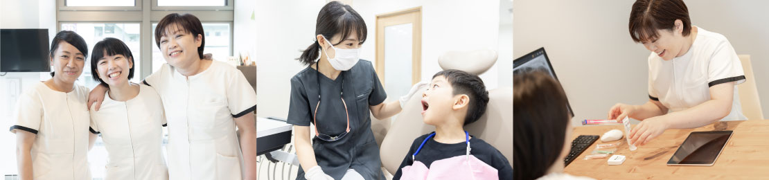 2025年7月現在、歯科医師(パート)、助手(常勤)、歯科衛生士(パート)を募集しております!