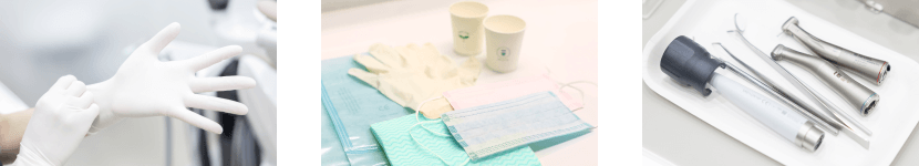 皆さまにより安全に治療を受けていただくために、使い捨てのできるディスポーザブル製品の活用やスタッフの手洗い・消毒の徹底、院内の消毒・換気など、医院全体で高い衛生管理意識を持って「安心して治療を受けていただく」環境の整備を徹底しています。